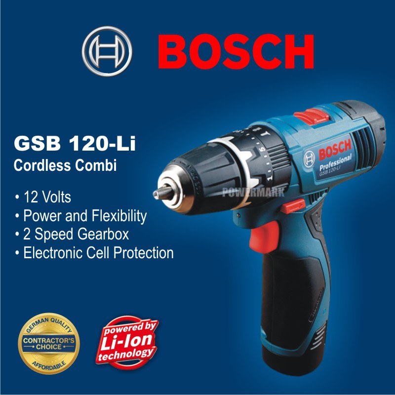 Related : Bosch Gsb 120 Li / Bosch GSB 120-LI Drill/Driver+GDR120-LI Impact Driver With ... : This drill/driver is cordless, runs off a bosch 1.5ah battery and comes with 2 batteries so you will always have a spare battery..