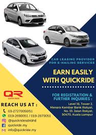 Sewa Beli Kereta Grab : Untuk disewa beli atau di sambung bayar kepada pihak bank sehingga ansuran bulanan dijelaskan sepenuhnya mulai dari tarikh dan masa kereta di ambil.